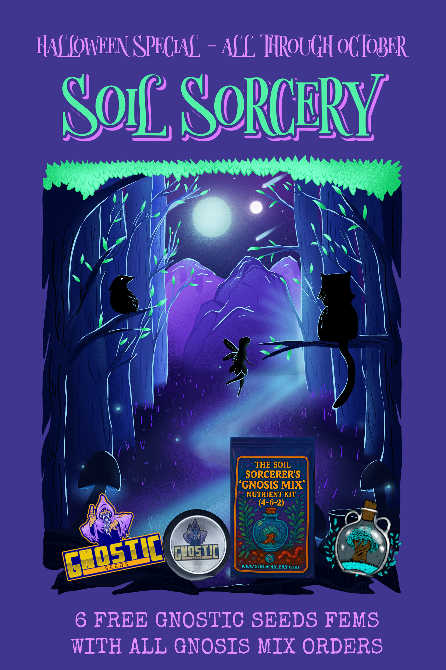 We’re teaming up with our good friends Gnostic Seeds to bring you a SPOOKTACULAR Halloween special! Now through October 31st all orders for any size of our Gnosis Mix Soil Nutrient kit will come with one free RANDOM 6 seed pack from Gnostic Seeds!